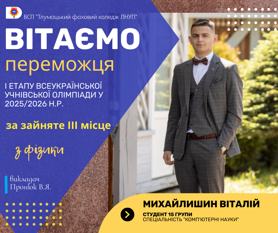 Щиро вітаємо переможців І етапу Всеукраїнської учнівської олімпіади у 2025/2026 н.р.:
